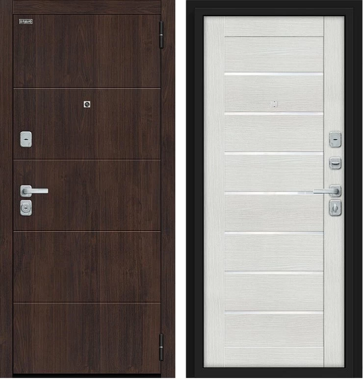 Надежная входная Дверь Браво Прайм/BChrome Almon/Bianco Melinga премиум класса по цене 41 103 руб. Большая толщина стали защитит от проникновения в ваш дом, квартиру или коттедж. Используется очень качественная фурнитура: замки, цилиндры, ручки, защелки. Покрытие и отделка двери изготовлено под внимательным контролем производителя. Дверь имеет долгий срок службы и гарантию.