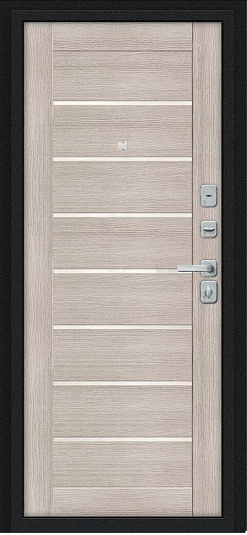 Надежная входная Дверь Браво Техно/BChrome Букле черное/Cappuccino Melinga премиум класса по цене 36 103 руб. Большая толщина стали защитит от проникновения в ваш дом, квартиру или коттедж. Используется очень качественная фурнитура: замки, цилиндры, ручки, защелки. Покрытие и отделка двери изготовлено под внимательным контролем производителя. Дверь имеет долгий срок службы и гарантию.
