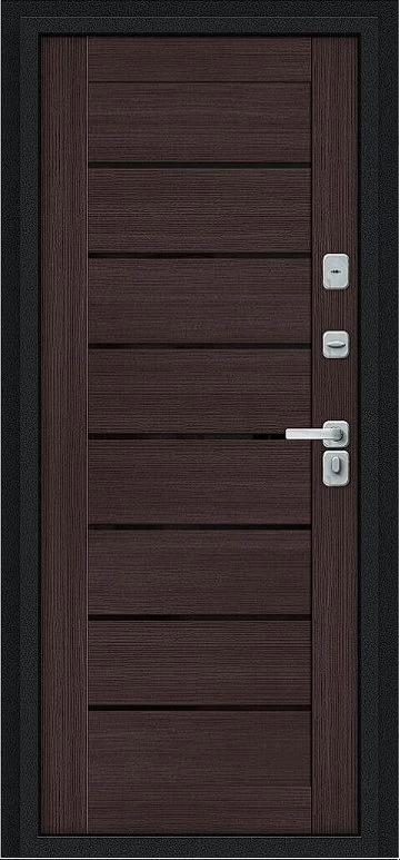 Дверь Браво Thermo Техно Д2/BChrome Букле черное/Wenge Melinga - недорогая эконом класса по цене 5 603 руб., отлично подходит для временной установки в квартиру под сдачу, строительство, ремонт. Не смотря стоимость, модель хорошего качества.