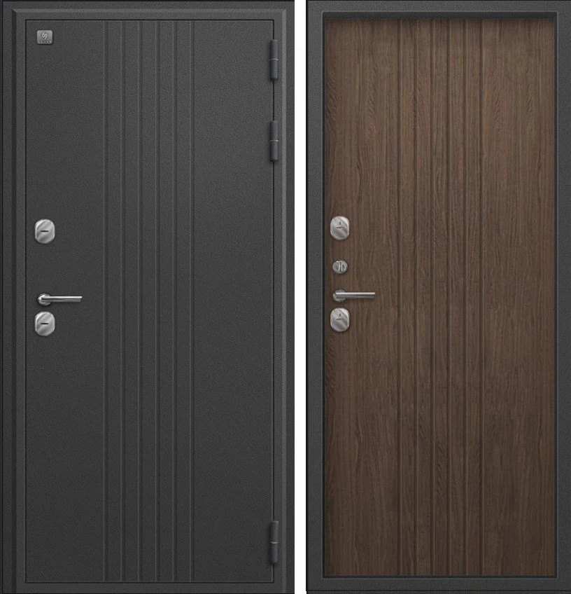 Надежная входная Дверь Термо-90 графит букле - миндаль рифлёный премиум класса по цене 39 603 руб. Большая толщина стали защитит от проникновения в ваш дом, квартиру или коттедж. Используется очень качественная фурнитура: замки, цилиндры, ручки, защелки. Покрытие и отделка двери изготовлено под внимательным контролем производителя. Дверь имеет долгий срок службы и гарантию.